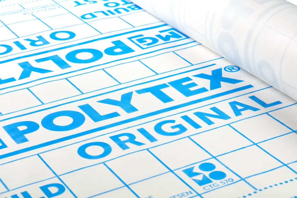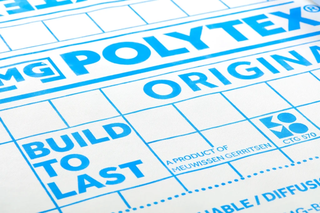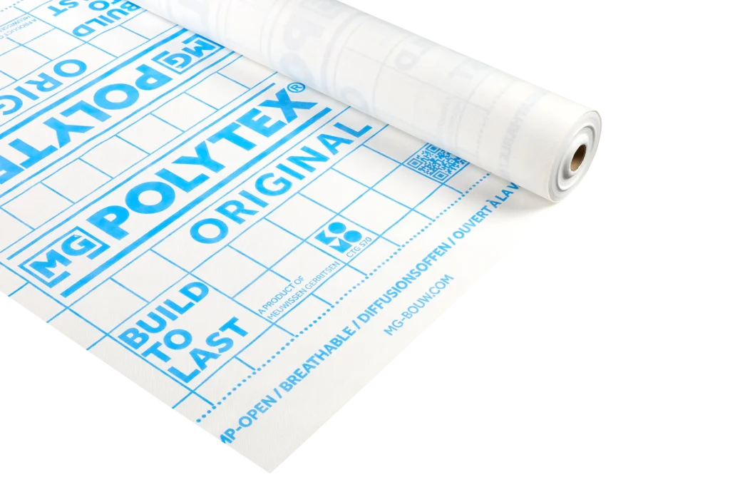 Polytex® Original est une membrane résistante à l'eau et ouverte à la vapeur, composée de deux couches de polypropylène entre lesquelles se trouve un film microporeux fonctionnel. Le Polytex® Original protège la structure du vent et de la pluie tout en permettant potentiellement à la vapeur de s'échapper à travers le Polytex® Original. Polytex® Original est certifié KOMO. Le Polytex® Original Plus dispose d’une bande adhésive intégrée, ce qui signifie qu’une bande de Tyvek® n’est pas nécessaire au niveau des chevauchements.
