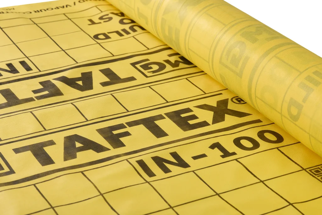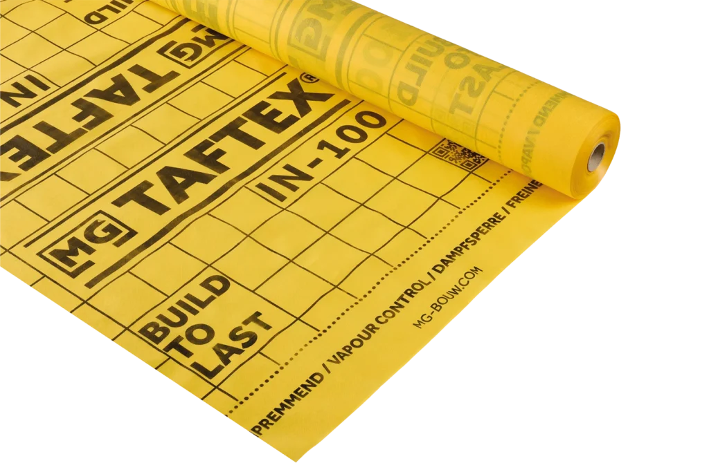 TAFTEX® IN-100 is een dampremmend waterdicht membraan, samengesteld uit twee lagen polypropyleen. TAFTEX® IN-100 wordt toegepast om te voorkomen dat vochtige lucht van binnenuit kan doordringen in de isolatielagen van de wand- en dakconstructie. Hiermee wordt condensvorming en uiteindelijk schimmel vorming in de isolatie tegengegaan.