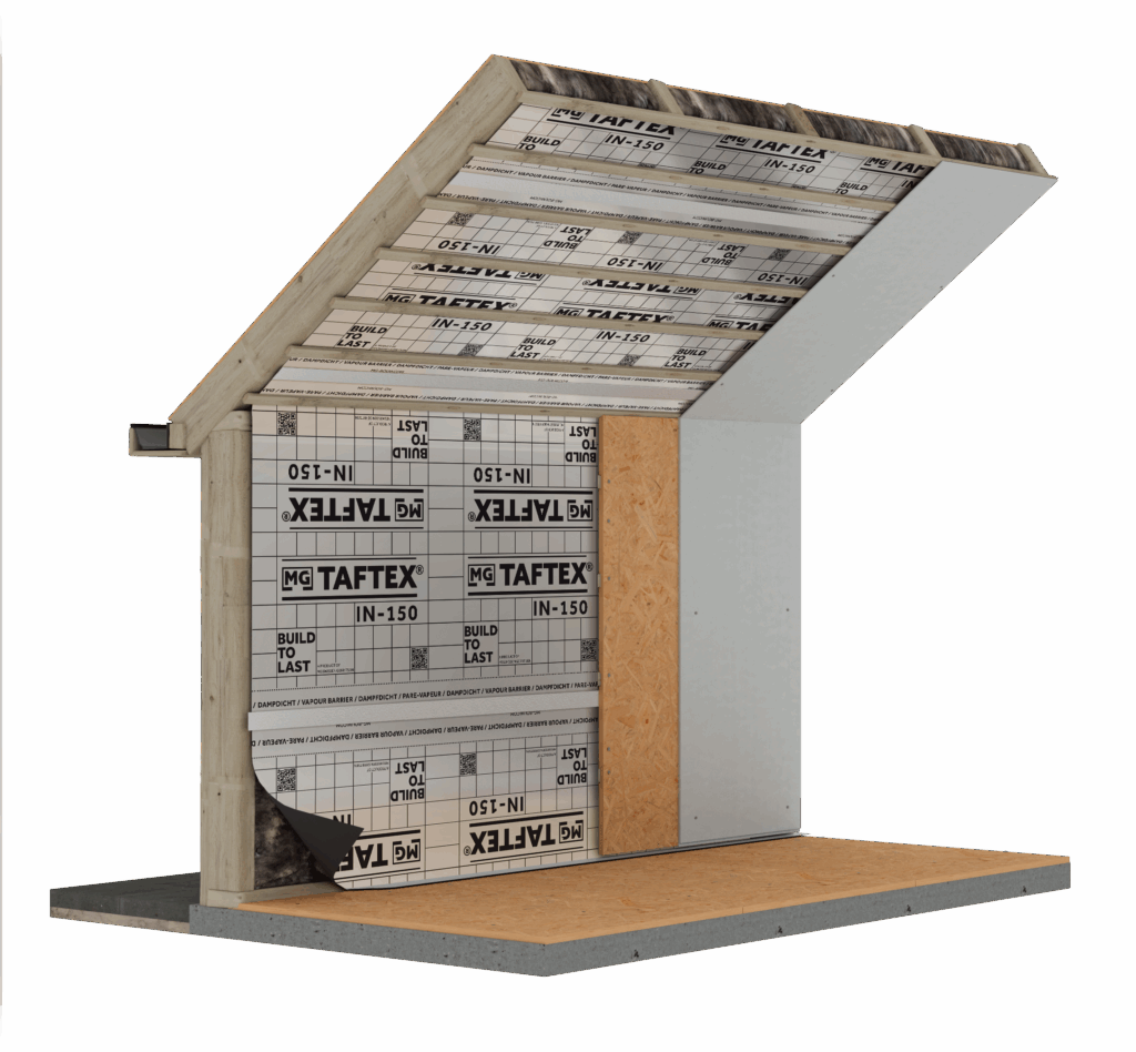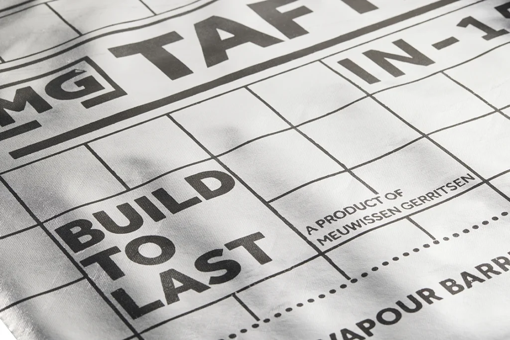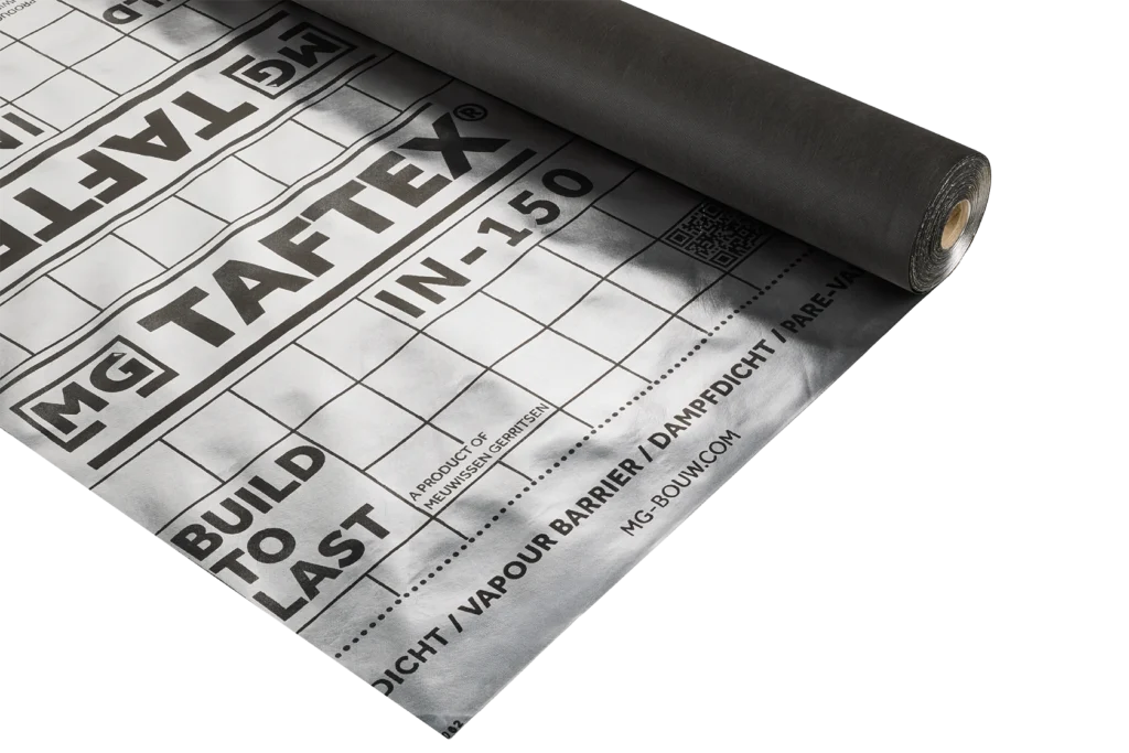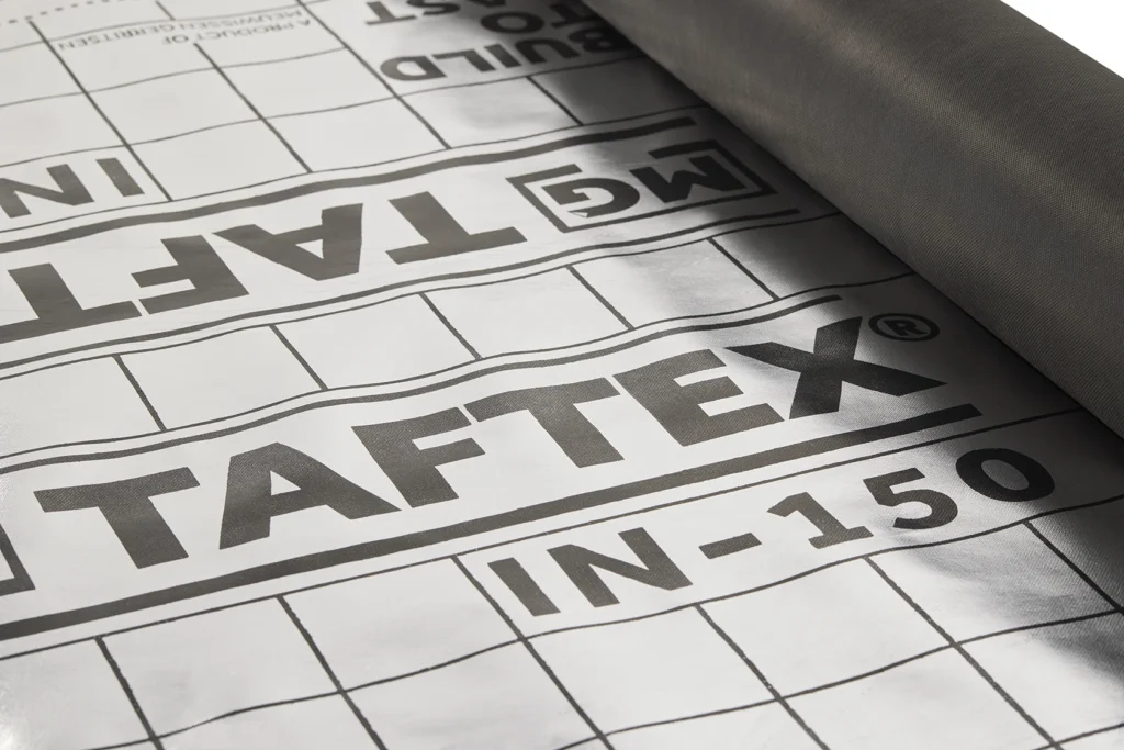 TAFTEX® IN-150 is een zwart PP spinvlies voorzien van een aluminium laag. TAFTEX® IN-150 is een dampdicht reflecterend membraan dat dient ter bescherming van isolatie en constructie in dak en wand. Damp vanuit de binnenruimte kan door de TAFTEX® IN-150 niet in de constructie of isolatie komen. Het aluminium oppervlak reflecteert de warmtestraling wat bijdraagt aan een hogere warmteweerstand.